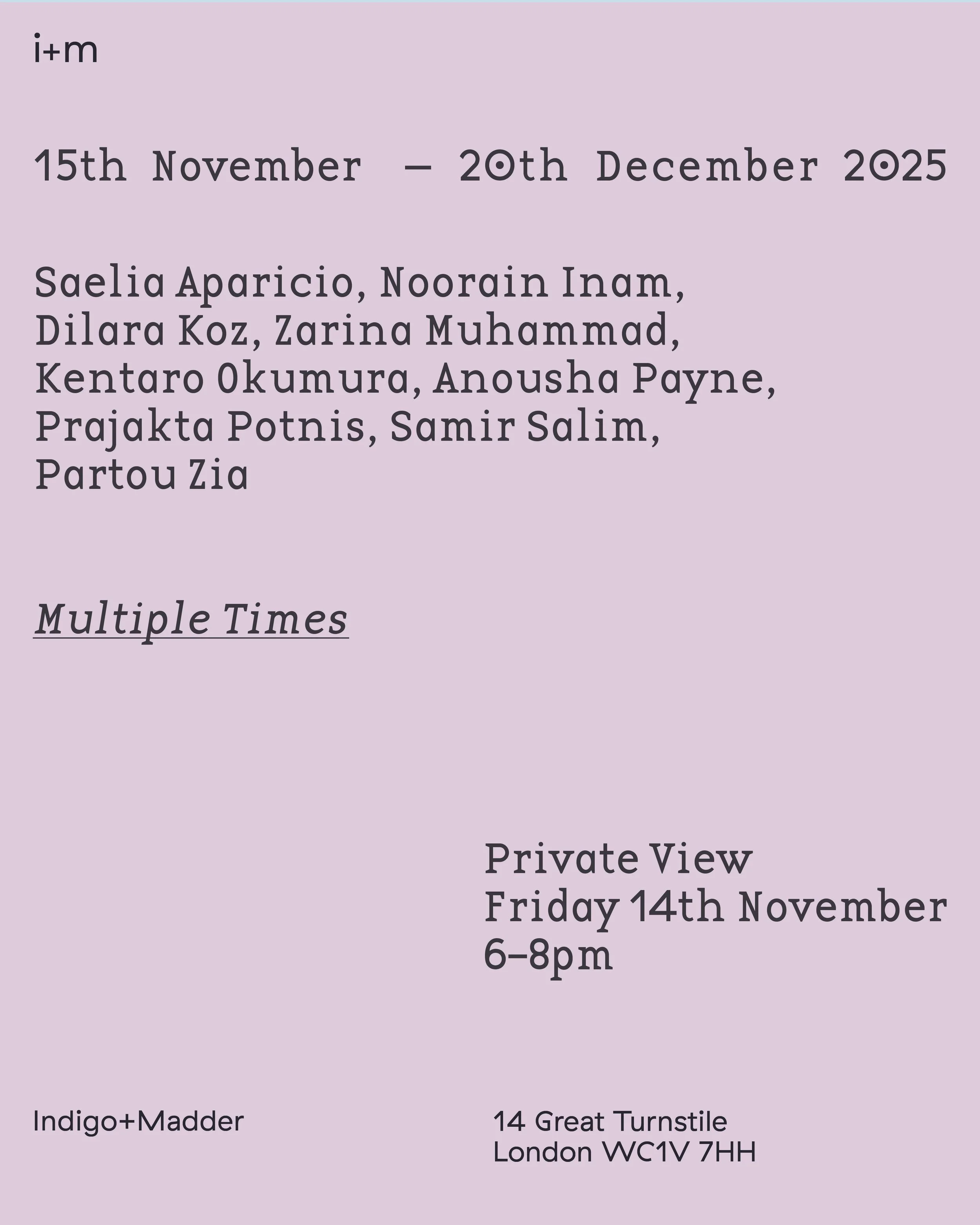 Multiple Times explores how different artists challenge linear and chronological notions of time often associated with “progress” and structures of organisation. The exhibition considers a plurality of temporalities—fragmented, intensified, slowed, accelerated, or collapsing past, present, and future—that interrupt sequential order and offer other rhythms and narratives.